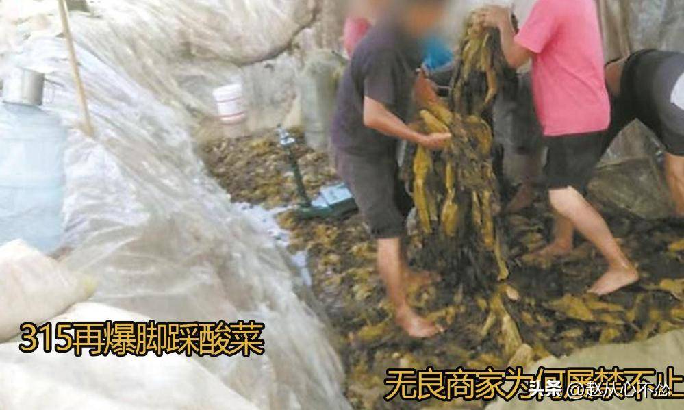 当前乱象让人天然联想到2022年的“315土坑酸菜”事务,其时的情景更为荒唐:工人将带土壤的芥菜倒入土坑,撒盐注水后盖上塑料膜就算完成腌制,赤脚踩踏、乱扔已是常态。